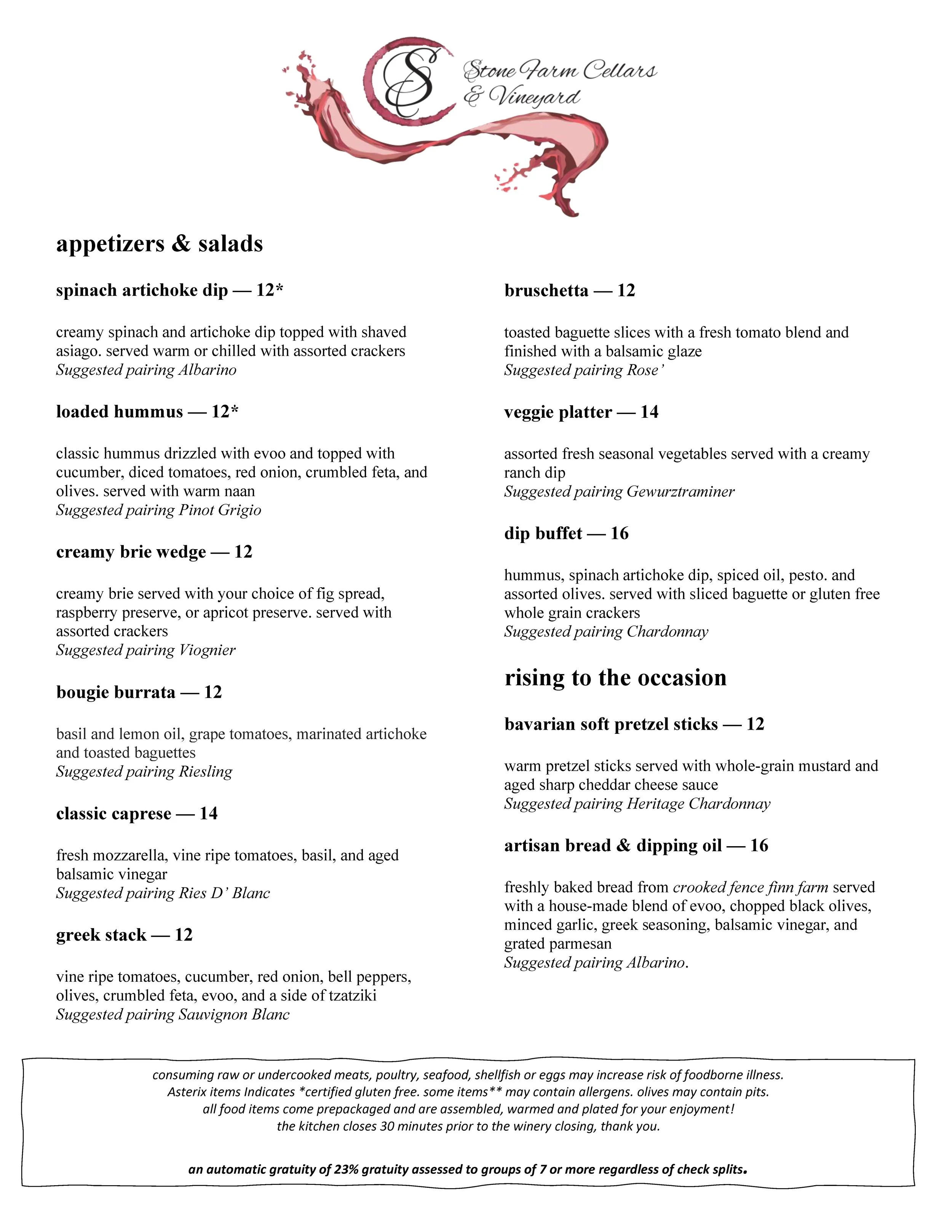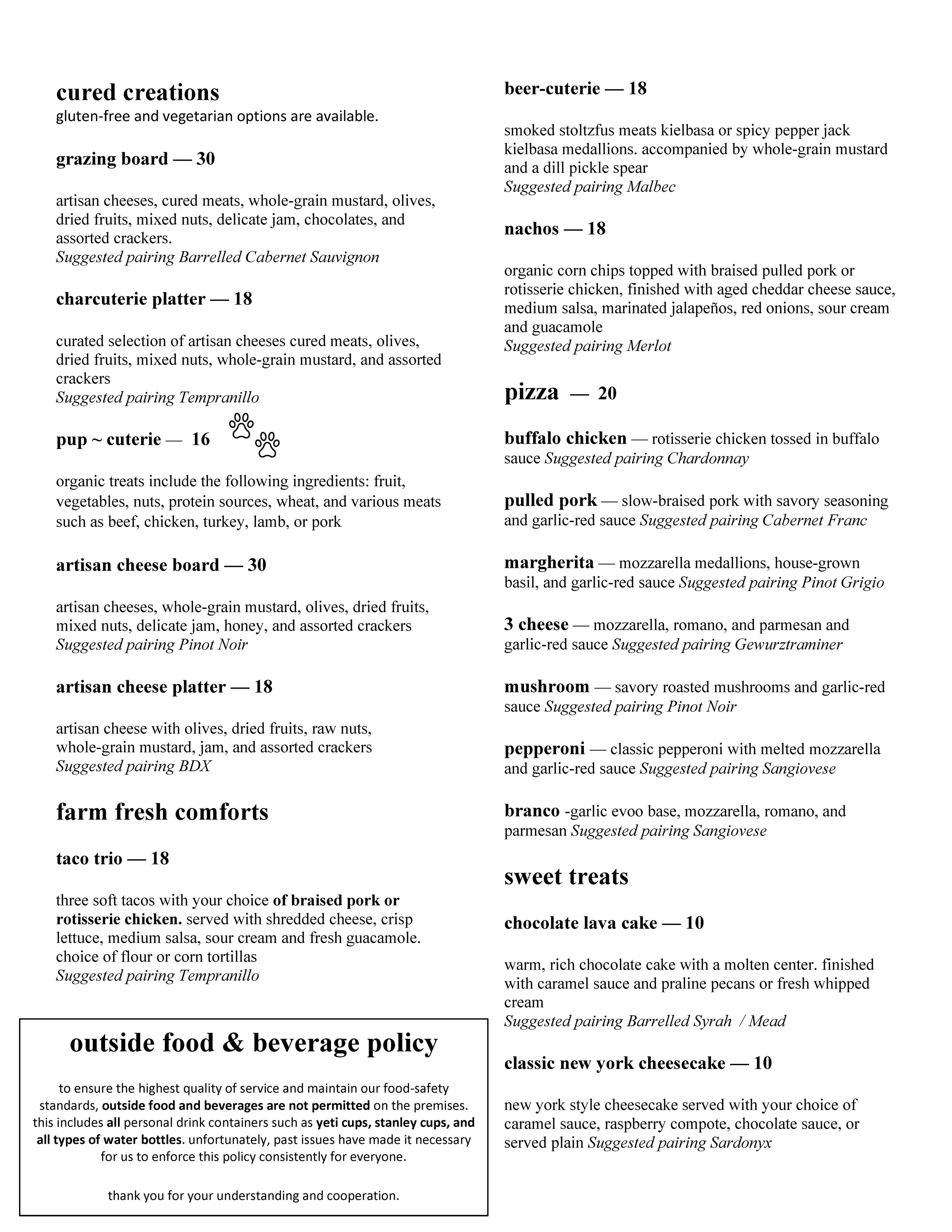Winery Menu